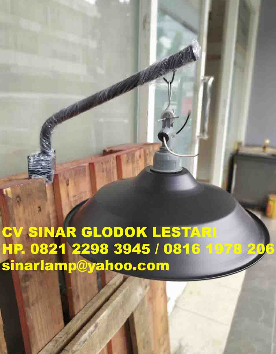 Kap Lampu Gantung WD Hitam + Tiang Tempel Tembok Dinding